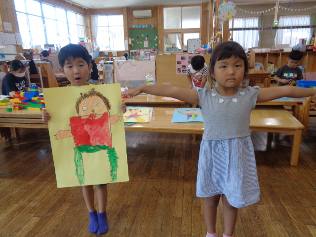 さくらグループとちゅうりっぷグループに分かれて、どんなかかしにするか話し合って作りました。