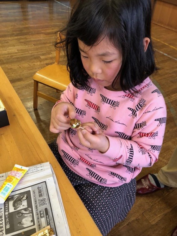 子どもたちは嬉しそうに、自分が買った袋の中身を園長先生に見せていました!