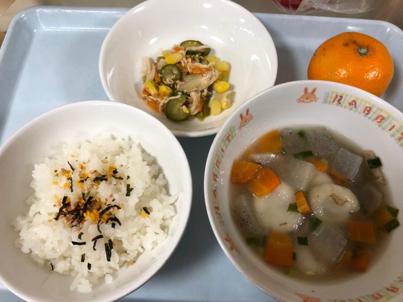 白玉大根汁、とりささみのサラダ、みかんでした。
