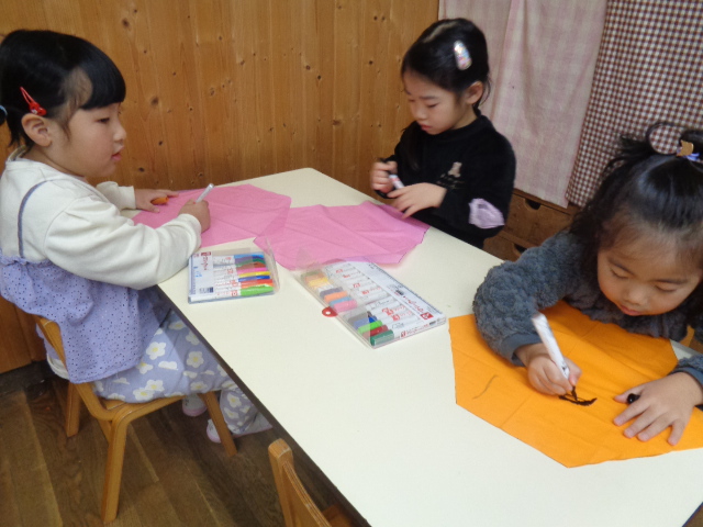 みどりぐみさん、1月はお正月遊びを楽しんだり、たこ作りをしたりしました。