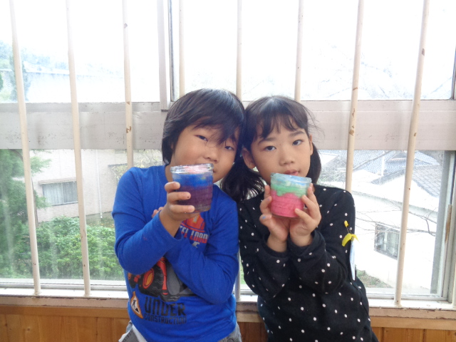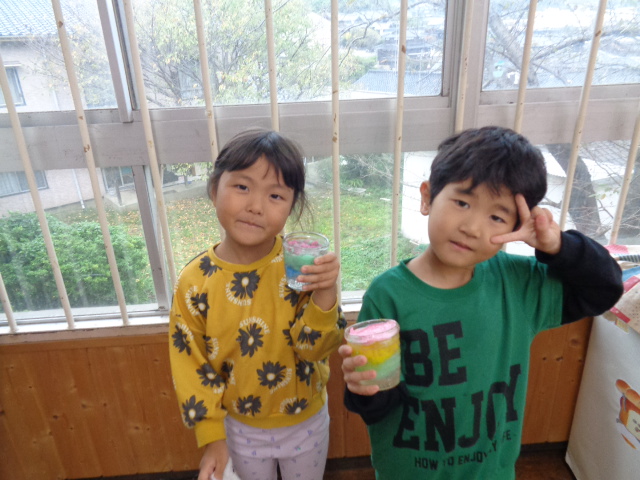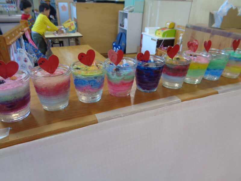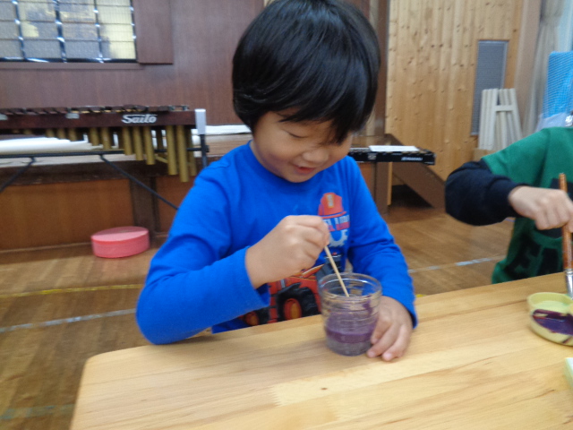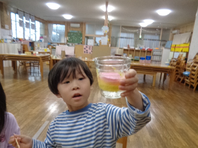 きれいな色の芳香剤 2025.11.08/ 保育のひとコマ 保冷剤の中身を出して絵の具で色を付けました。 混ざりすぎないように優しく。違う色を上から重ねてきれいな色の 芳香剤ができました。 最後はアロマオイルを垂らしてできあがり!! 1 回