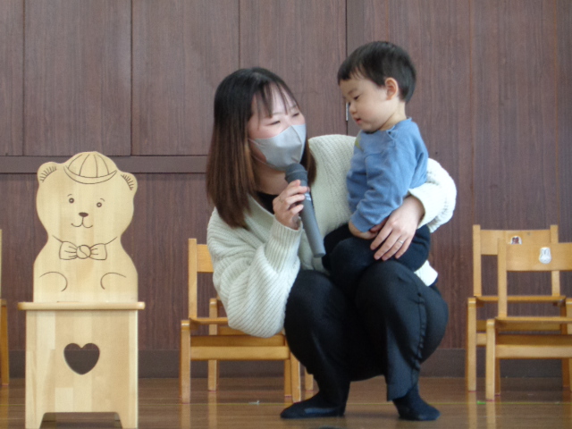 くまさんの椅子に座ると緊張した表情の子も