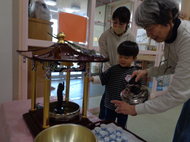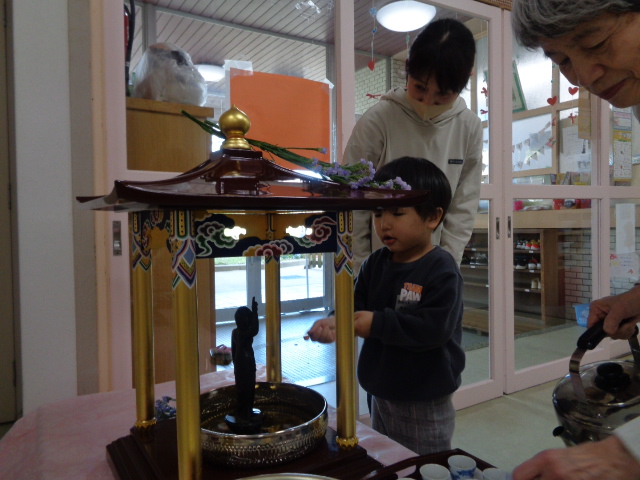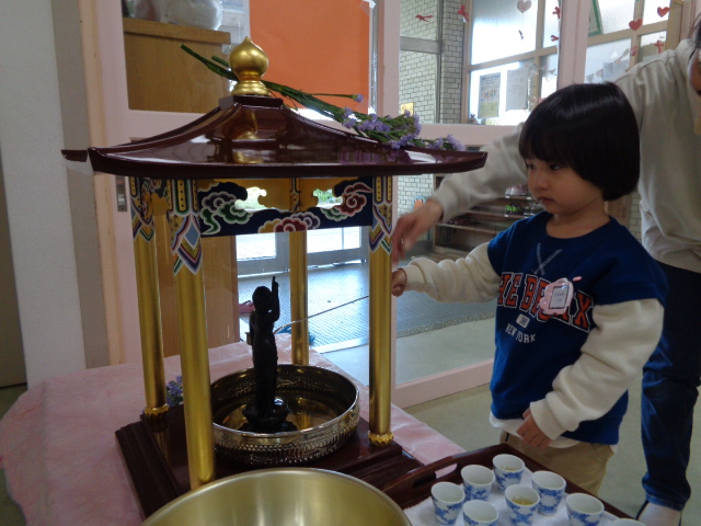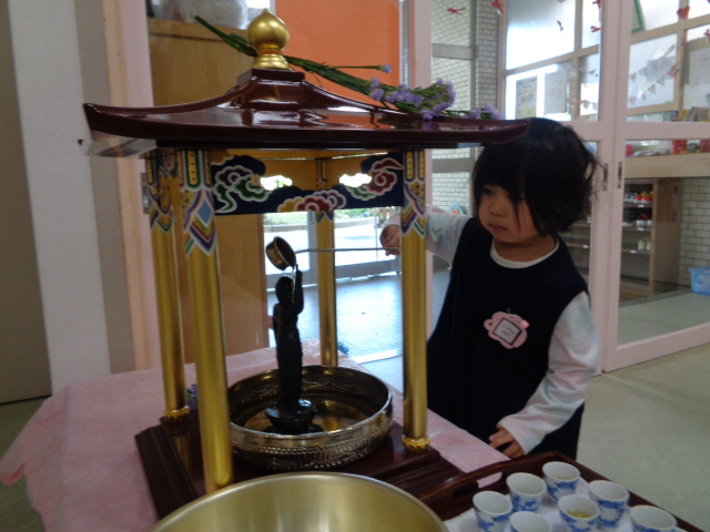甘茶をかけてお誕生をお祝いしました。